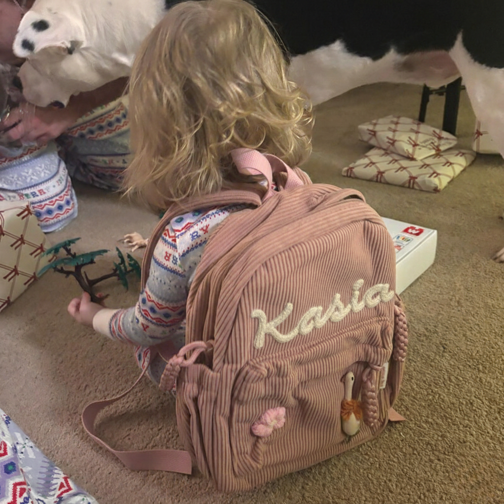 Personalizowane plecaki wykonane z najwyższej jakości sztruksu, miękkiego i trwałego, idealnego dla dzieci. Każdy plecak ozdobiony jest imieniem dziecka, co sprawia, że staje się wyjątkowym i niepowtarzalnym prezentem – idealnym na urodziny, do przedszkola lub jako pamiątka na lata.